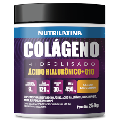• 9 g de Colágeno hidrolisado: auxilia na melhora da aparência elasticidade da pele com ação no fortalecimento dos cabelos e unhas